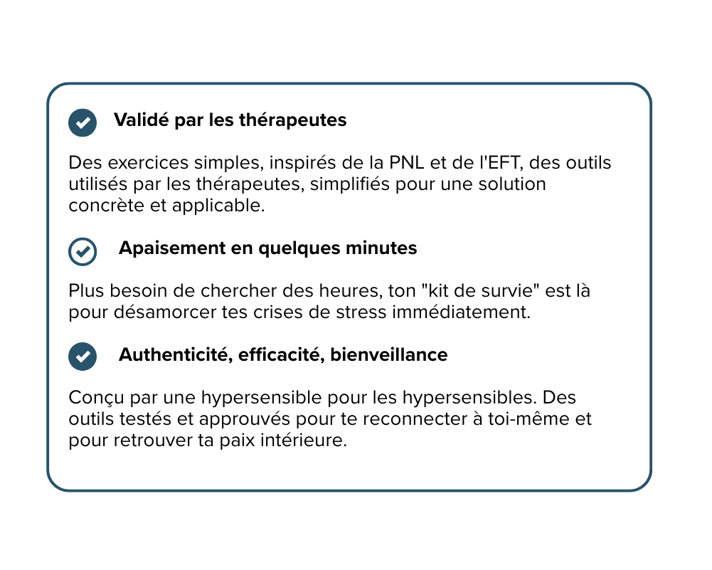 Notre mission est de te donner des outils concrets pour t'aider à te sentir mieux au quotidien, chaque exercice a été testé et approuvé par des hypersensibles.